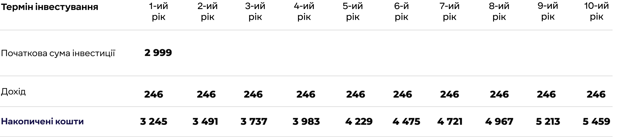 Приклад розрахунку мінімального доходу від інвестиції в 2 999 доларів США за курсом НБУ за період:
